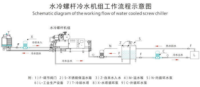 產品特點Features: 1、采用國際最先進的半封閉螺桿壓縮機,電機、壓縮機一體化,無軸封滲漏之慮;電器及制冷系統原器件全部為世界著名品牌; 2、壓縮機容量控制采用多段式或無段式,提供更大范圍的制冷量,載何性能好,穩定性和可靠性更高,更加節省能源,壓縮機采用卸載降壓啟動,避免對電網的沖擊; 3、機組可根據負荷的需求,實行智能化程序控制:100%、75%、50%、25%(或啟動)、0,通過四段空調式連續卸載容量控制系統,更節省能耗; 4、采用德國“SIEMENS”PLC可編程觸摸控制器,人機界面全中文顯示,動畫顯示機組系統各部運轉狀態,可進行參數設定、能量模擬控制、故障查詢等多重保護功能,保證機組安全穩定運行; 5、風冷冷凝器全部采用進口風機及大風量低噪音軸流設計,換熱效率更高;風冷系統無需配置冷卻水塔及冷卻水泵,安裝簡單,移動方便,適合生產場地比較緊缺的環境使用; 6、水冷系列需要配置冷卻水塔及冷卻水泵,冷水機放置在室內,噪音比較低,制冷效果更好,應用于通風散熱不是很好的環境; 7、為保證使用安全,機組內置漏電保護器、相位保護、過載保護、電流保護;系統安裝了高、低壓保護傳感器,為防止缺水或循環水系統內部結冰,機組安裝了流量開關和低液位保護裝置。 8、螺桿冷水機組使用壽命長,穩定性好,無故障運行可達4萬小時以上。